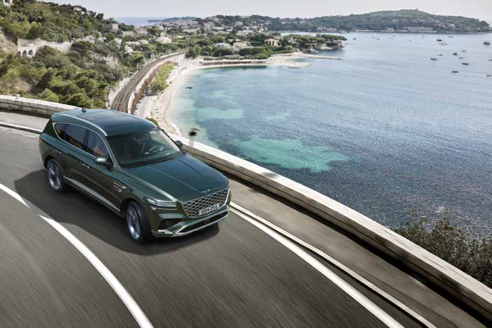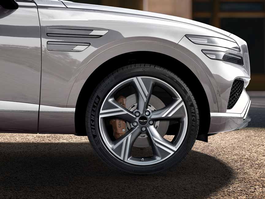 GV80 하이브리드는 유려한 곡선과 강력한 인상을 주는 전면 디자인이 특징입니다.