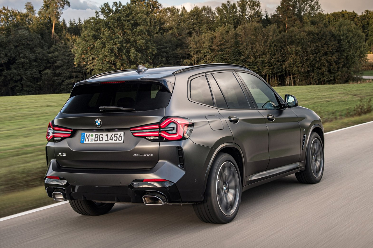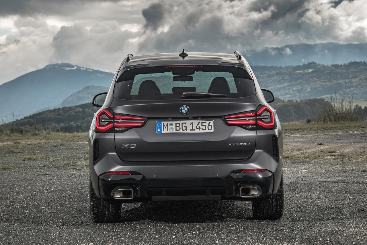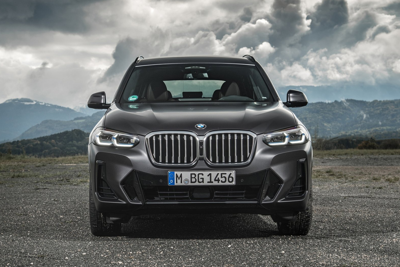 BMW X3의 외관은 역동적이며 스포티한 디자인을 자랑합니다. 큰 키드니 그릴과 날렵한 LED 헤드라이트는 강한 인상을 줍니다.